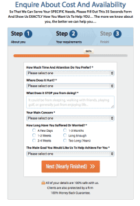 Anyhow, this type of online form is better than nothing, but there’s a much better (and more profitable to do it) and this is the type of thing which also makes the difference between a patient who doesn’t want to book for more than 3-4 sessions, and one will happily attend all 12 of the visits you expertly recommend.